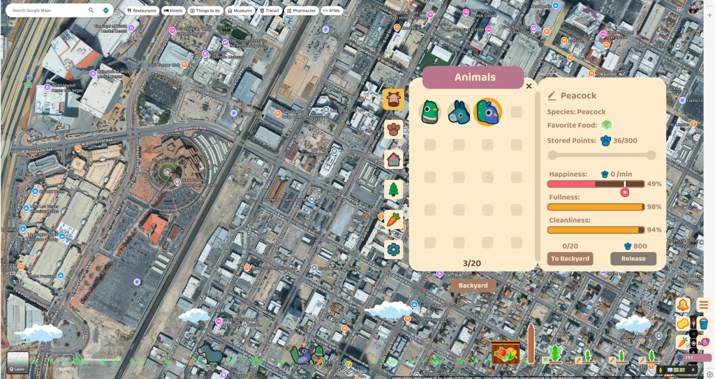 In the couple hours I played I unlocked some animals, added a bench and a feeder. There’s a scratcher, an auto poop cleaner, tons of animals, lots of food and tons of decorations.